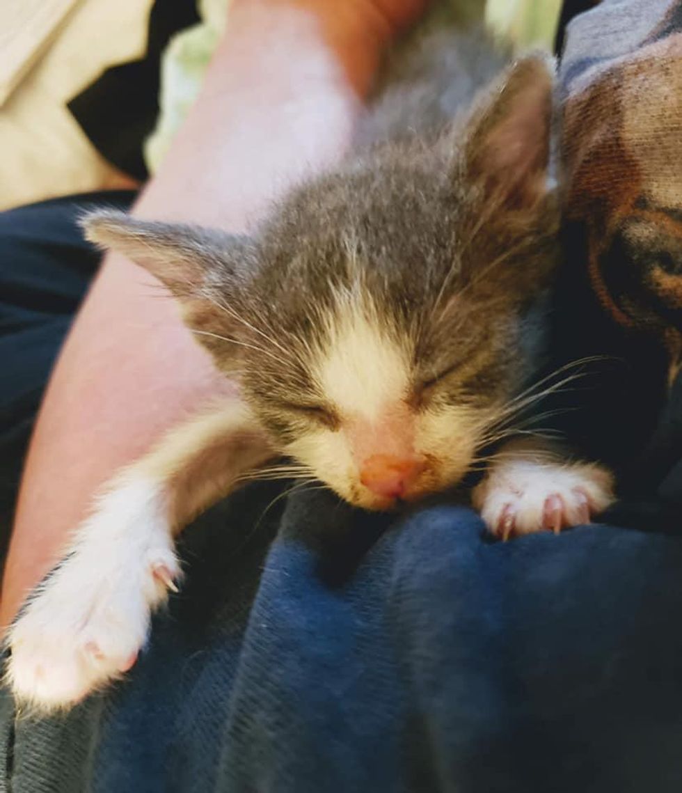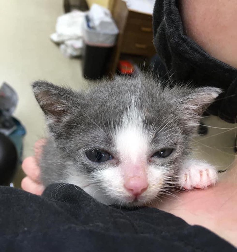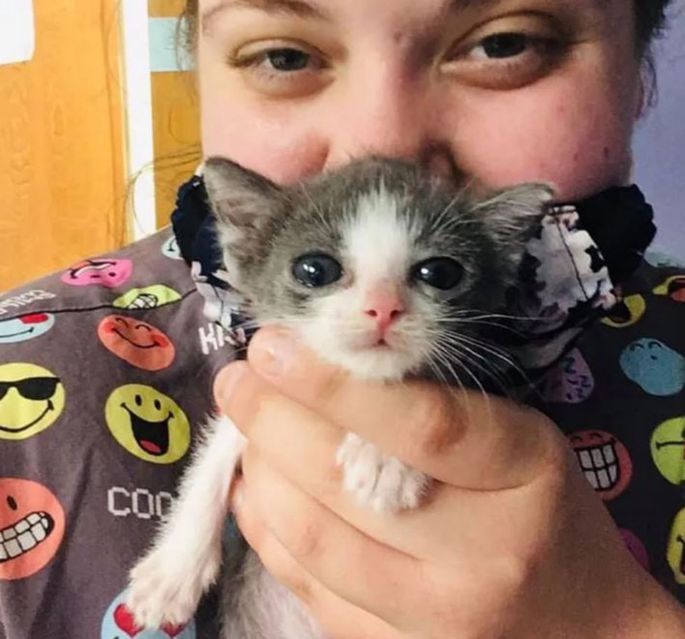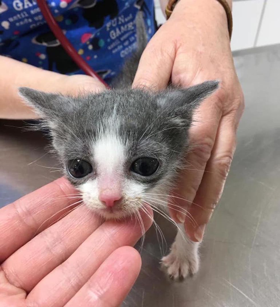 “He was one of the eight kittens born to a very young mom. The people who found his mom and siblings thought he was the runt and wasn’t growing,” Sarah Hodges at Sheets Pet Clinic shared with us.