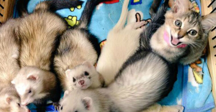 The family knew exactly what to do with Komari so they welcomed her in their home which the once stray kitten shared with five older brothers who happened to be ferrets.