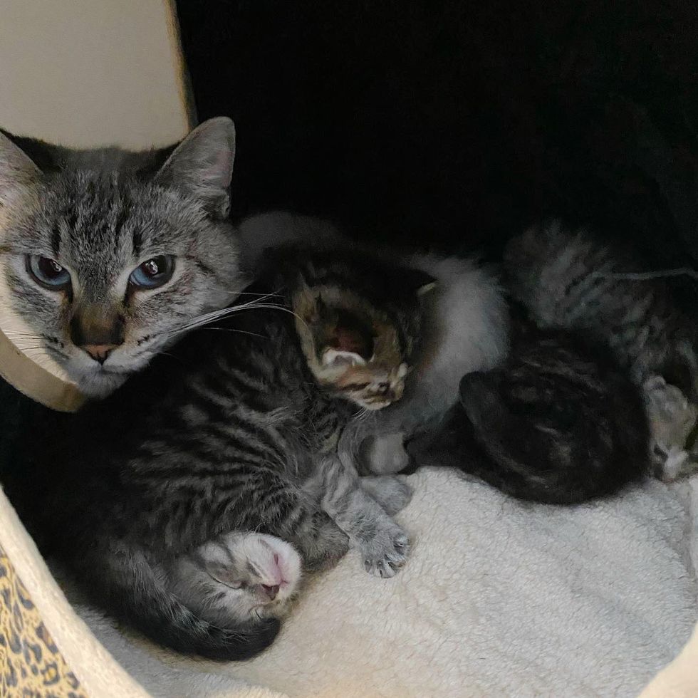 The cat family came to Laura’s home so the mom could have a safe place to raise her kittens.