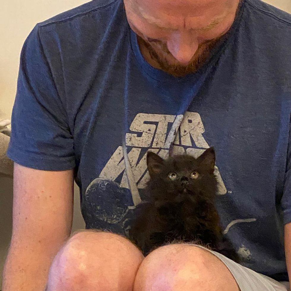 After he arrived in foster care, he was all cleaned up, got a full belly and quickly found himself a warm lap to nestle in. The sweet little guy let out his adorable purrs in front of his human, and all he wanted was to cuddle.