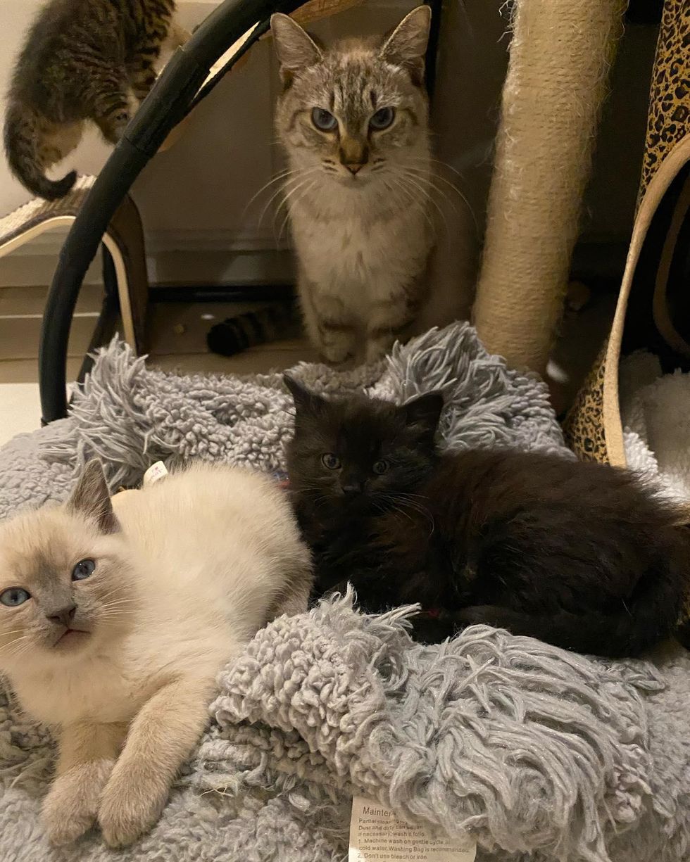 Around that time, a stray cat was found with her kittens in a bush at a feral cat community. No one knew where she had come from, but they suspected that she might have been abandoned at the apartment complex.