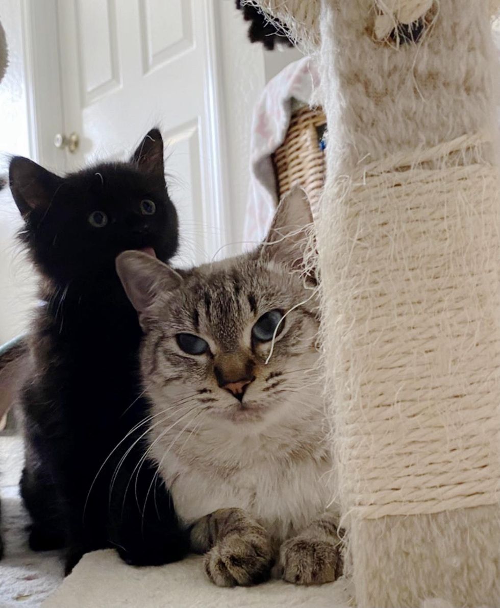 Over the next few days, the kitten would demand lap time from his humans, no holds barred. Despite having many snuggle toys and getting undivided attention from the entire family, Laura knew that something was missing — a buddy his size to play with.