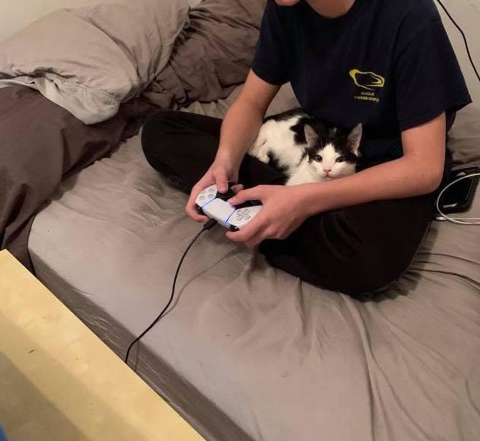 What he lacks in size, Kidou surely makes up for in personality. The little guy quickly found his favorite napping spot in his human’s lap.