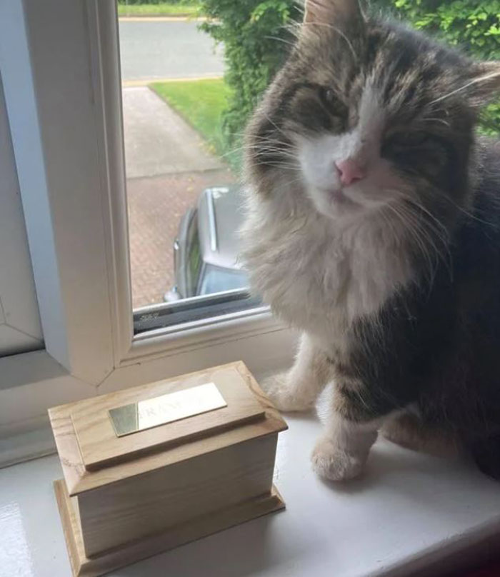 The family was happy to be reunited with their pet. But Frankie’s return did raise the question of which cat the family had cremated and stored in the box in their home.
