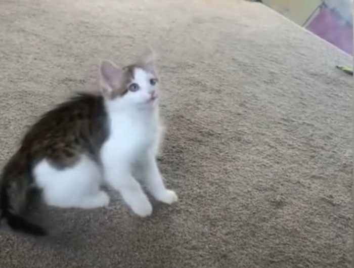 Five-week-old Ollie looked goofball and lovely. When she started to walk, Jade knew that it was time the little girl jumped out from her bed and explored the surrounding world. The foster mom made a larger space for her with some toys inside. And the little kitten loved the new change.
