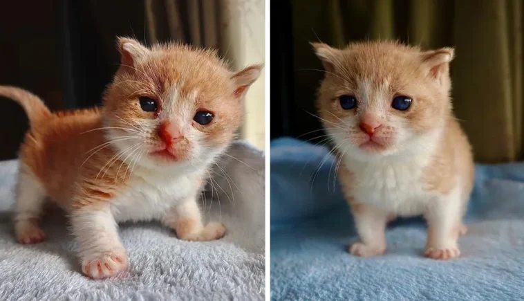 A 3-week-old kitten named Nugget was brought to a vet clinic after being found abandoned in some bushes. At such a tender age and being riddled with cat flu, the kitten was in desperate need of rescue.
