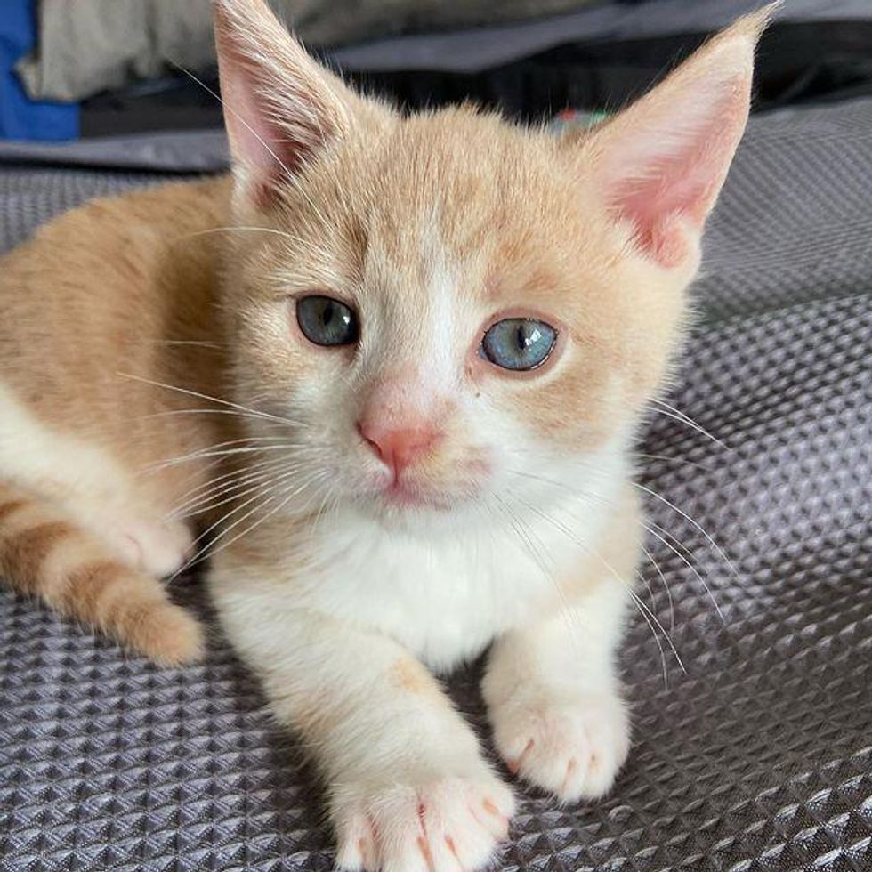 As it turns out, the kitten has elbow and hip dysplasia in all four of his legs, and mild Swimmers Syndrome in his hind limbs. He is deaf but can communicate remarkably well in his own way.