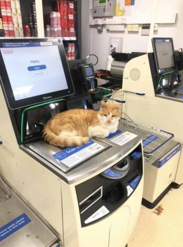 Now, just two months later, Pumpkin has flouted the ban. He was once again found napping on his favourite self checkout kiosk.