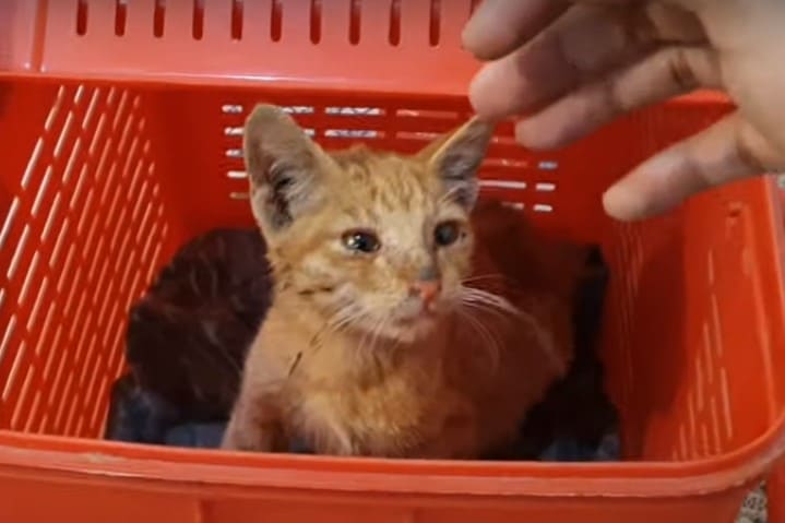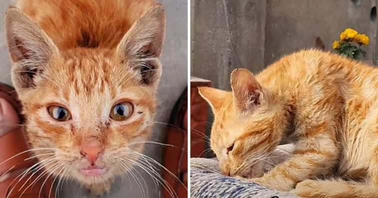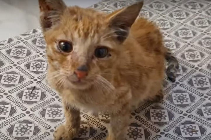 This sick kitten was found and rescued by Animal’s Cottage – Rescue Center. He suffered from diarrhea and the loss of his mom. But what impressed the rescuers was his staring eyes. As humans can’t understand the cat’s language, the rescuers couldn’t tell exactly what he wanted to say through those miserable eyes. But it seemed that he was long for love and attention.