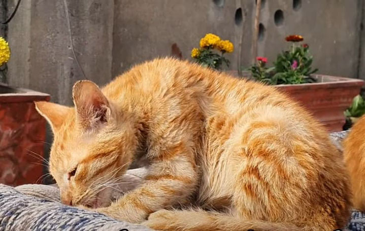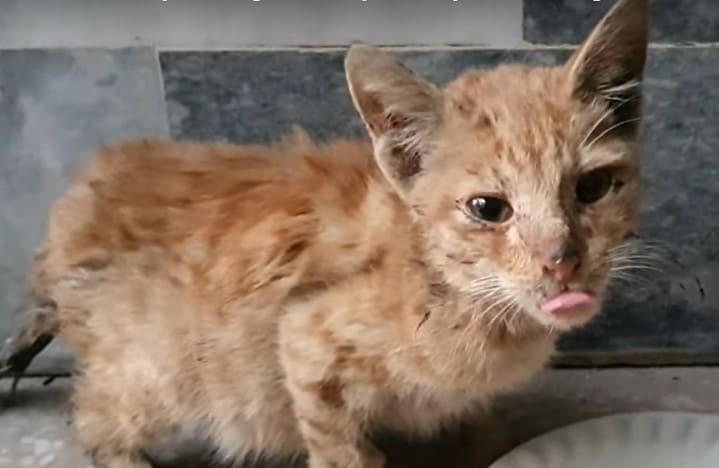 The story started when Animal’s Cottage received a call about a kitten found in a butcher shop. Because of diarrhea, his tail and back legs were dirty. The rescue team calmed him down with some soft food and took him to their shelter. It was dangerous for the kitten to live in that place where passing vehicles were on the road all day long, and he might be hit by them.