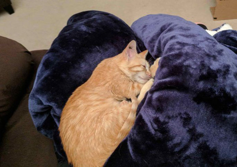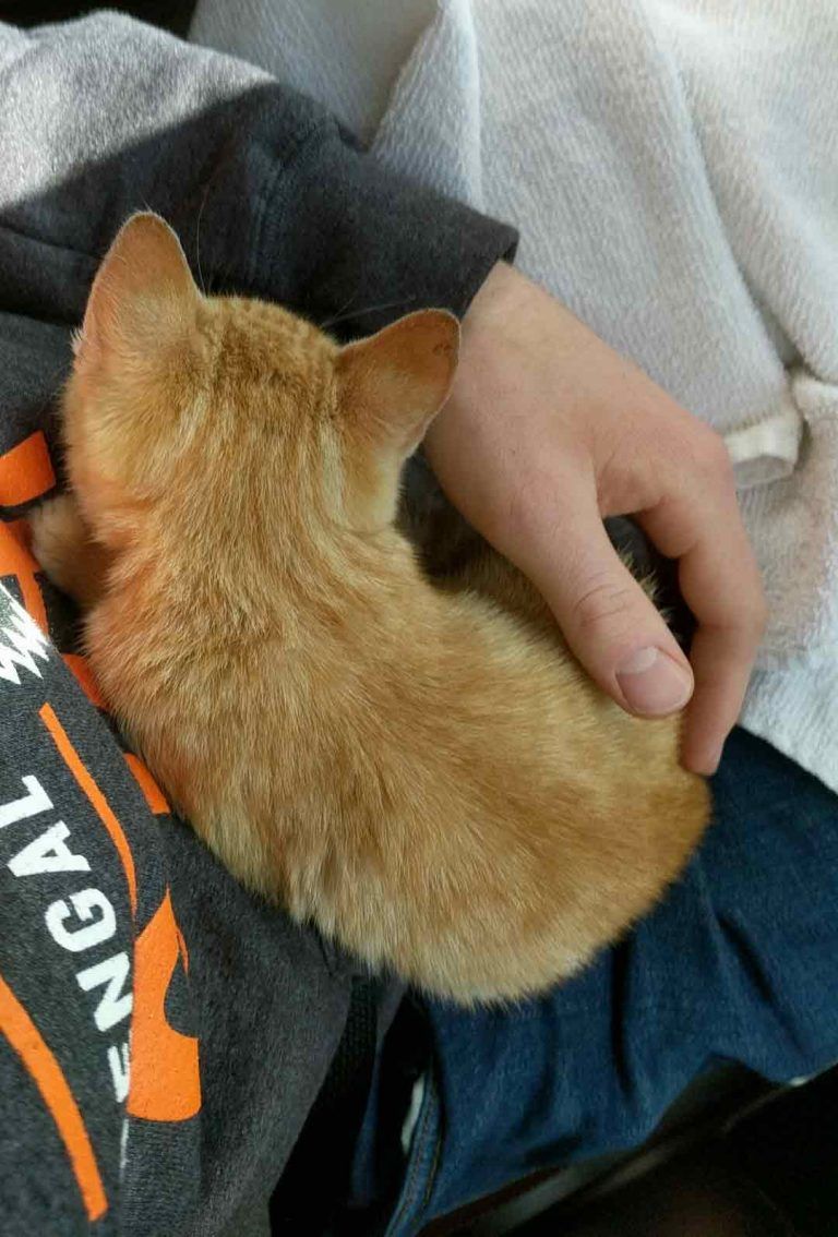 A tiny ginger kitten that was all alone took an immediate liking to Imgur user, PW, as he headed to his car one evening.