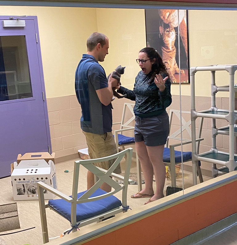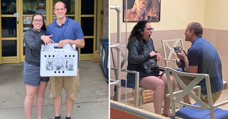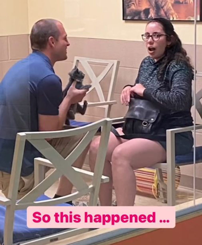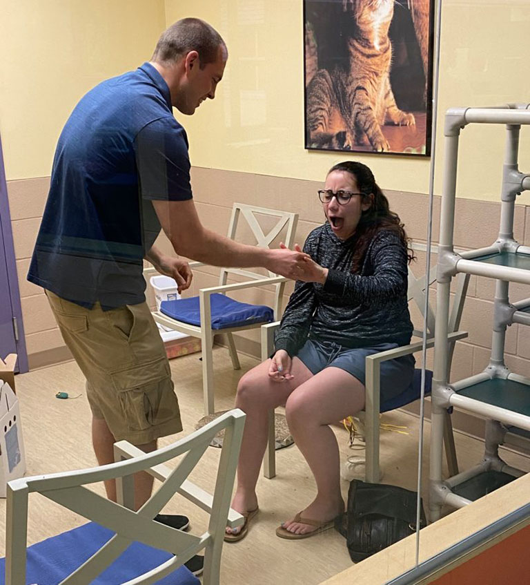 Mike Lovely and Vanessa Petrasko had made the wise decision to adopt a kitten from a local shelter. And after being together since 2016, Mike decided it was the purrfect time to take another life altering step. So when they arrived at Animal Friends to pick up their new family member he had a surprise planned. Even better? The staff had cameras ready to record the momentous occasion.