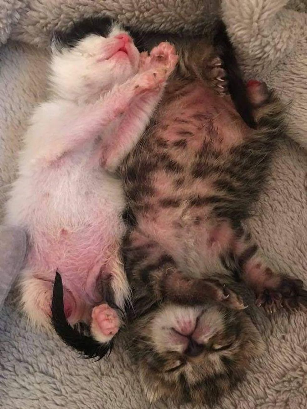 Through painstaking care, the feline siblings perked up and their appetite soared. They began to put on weight and gain strength.