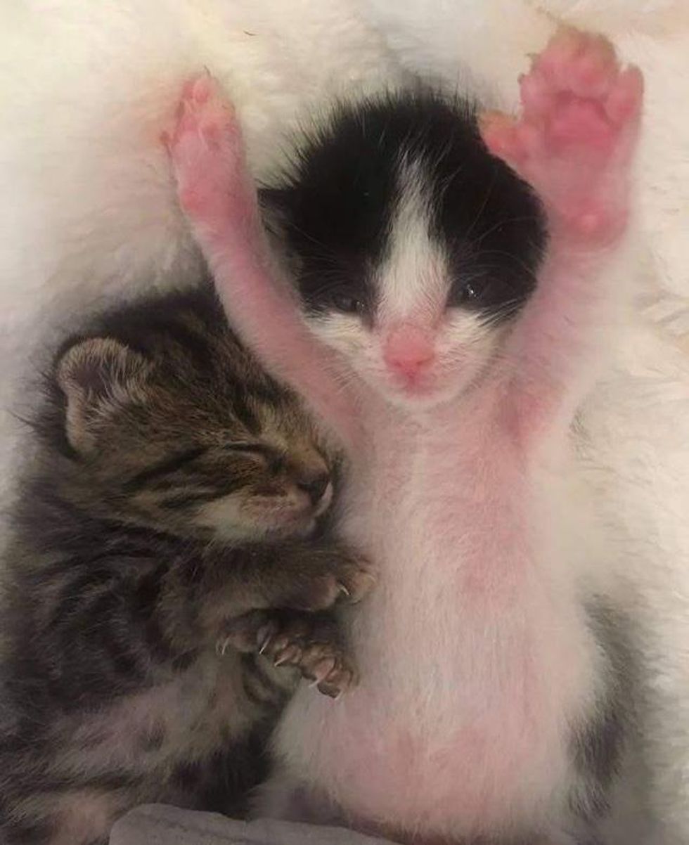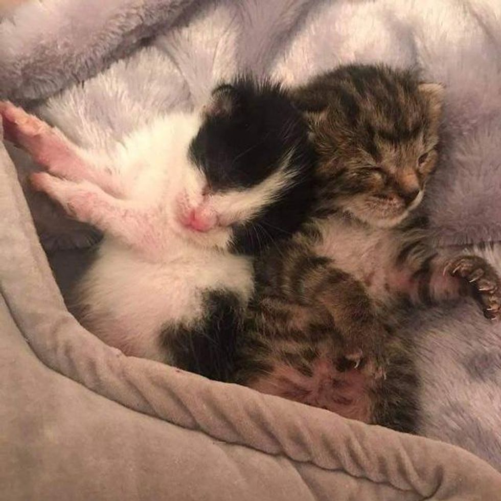 “They were found outside in a backyard by a lady. She contacted me and sent me pictures of the kittens showing that they were both missing a paw,” Marie shared with us.