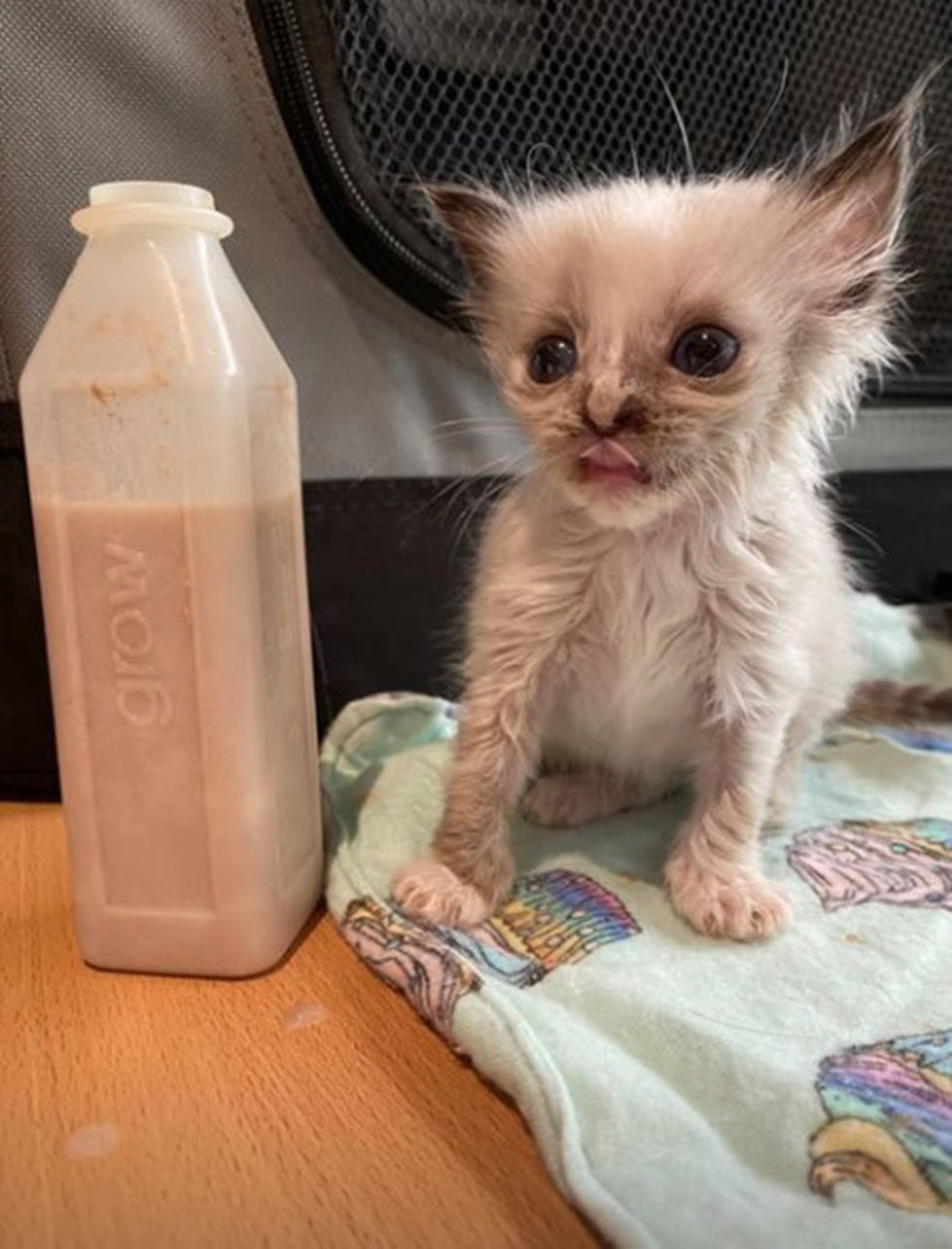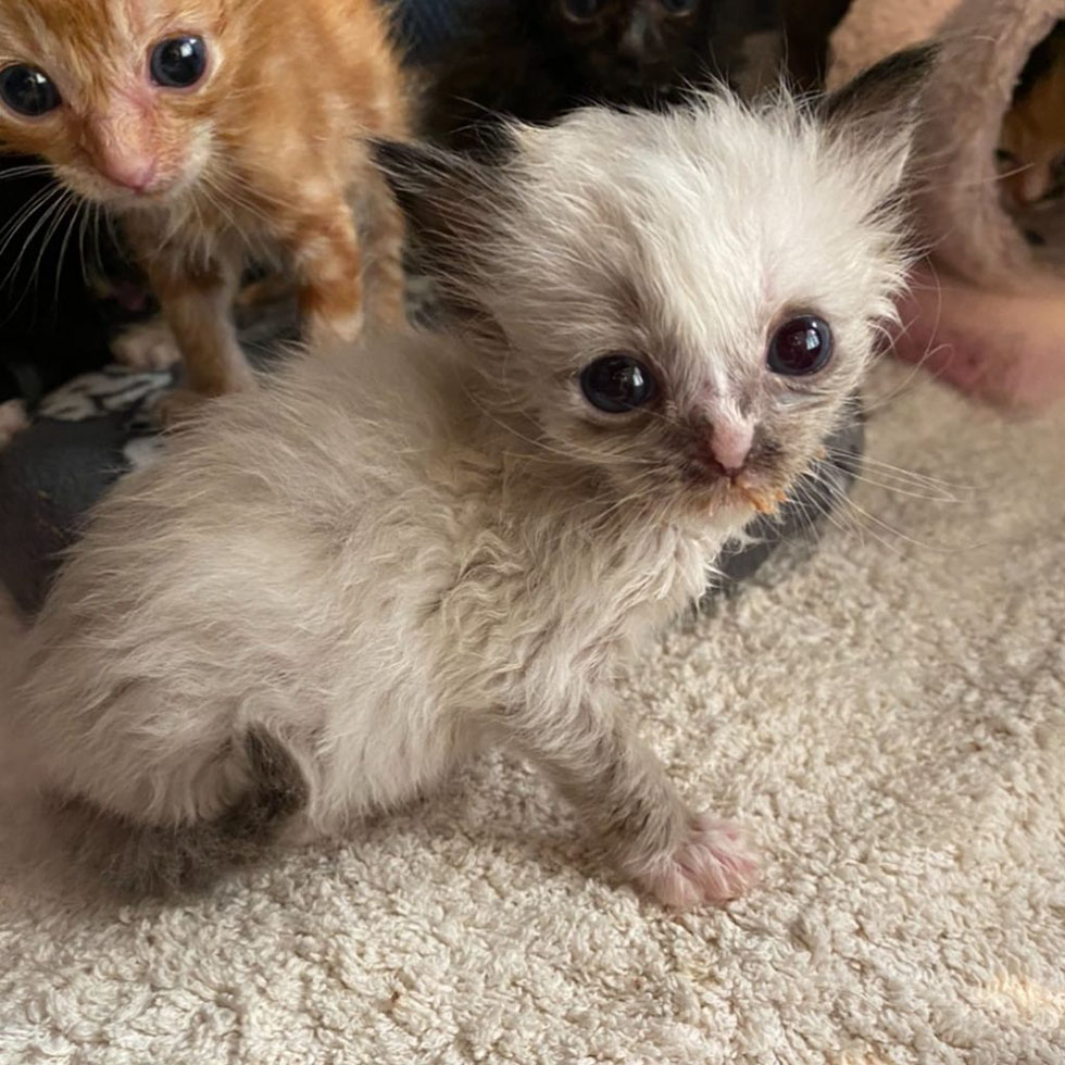 Amongst the surviving kittens, Wasp, a Siamese mix, was the tiniest of the bunch. She was severely dehydrated, anemic and emaciated. Despite all the odds stacked up against her, she was hanging in with all her might.