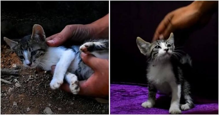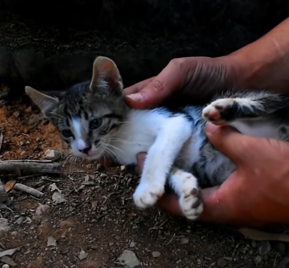 When some people heard a tiny kitten crying near their house, they called Animal Lovers for help. After receiving the call, some rescuers immediately came to save the kitten. When they arrived, they were shocked to see what happened to him. He cried for his mom who was bitten by a dog. Sadly, the mom couldn’t survive and left the poor baby alone.