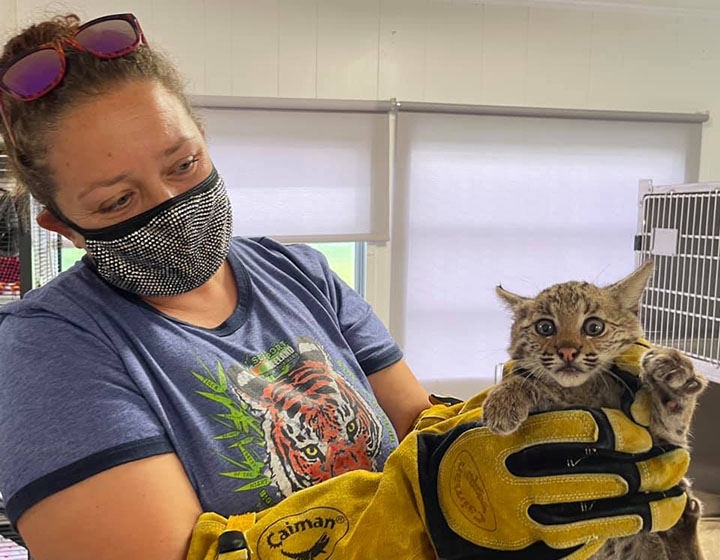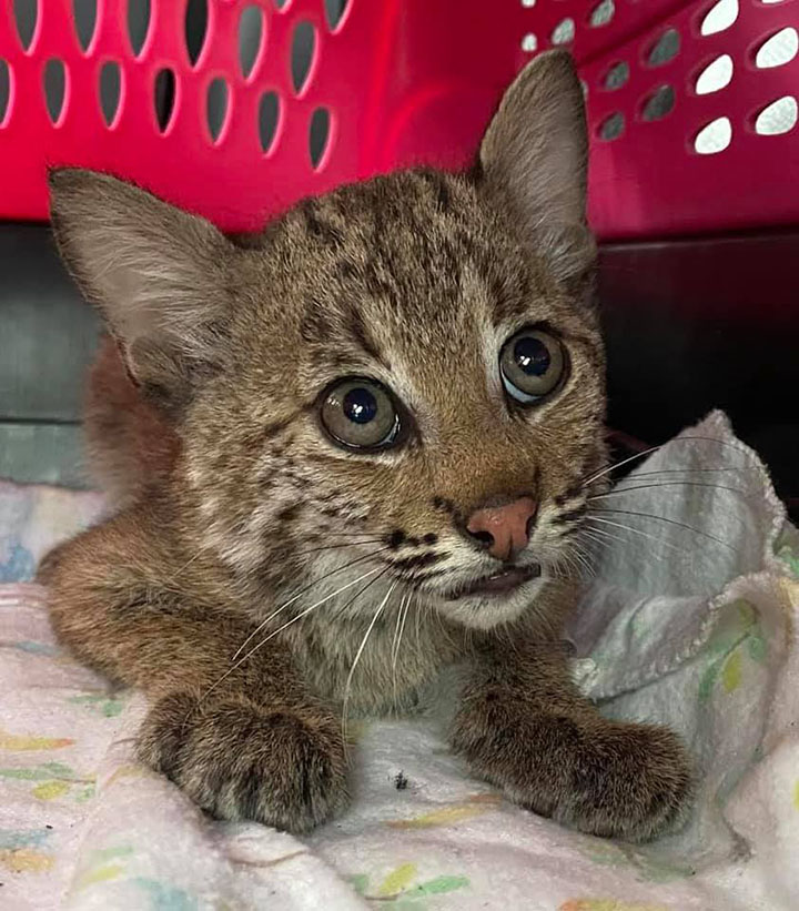 Sadly, it happens all the time. Wild animals are pushed from their homes and environments as humans encroach on their territory. Here in Florida, one of the most displaced animals is the bobcat, simply trying to survive. The areas they roam and hunt in are being developed for personal and commercial use. But what of the animals? Where do they go? They end up wandering the streets, literally, where they are often hit by cars. And they end up in peoples backyards. Where they are scared, hungry and possibly killed for being in the human’s territory. Just like one bobcat kitten recently found named Byrdie.
