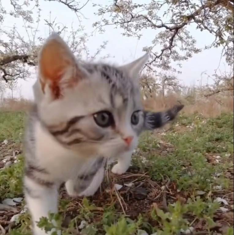 It’s no secret that flowers are a stunningly beautiful gift of nature, but did you know they could be even more breathtaking with a kitten in the scene? This is her very first trip to the outside world and needless to say, the tiny cat is literally thrilled. Thankfully, her parents have chosen a fairly enchanting landscape for their furbaby to freely explore.