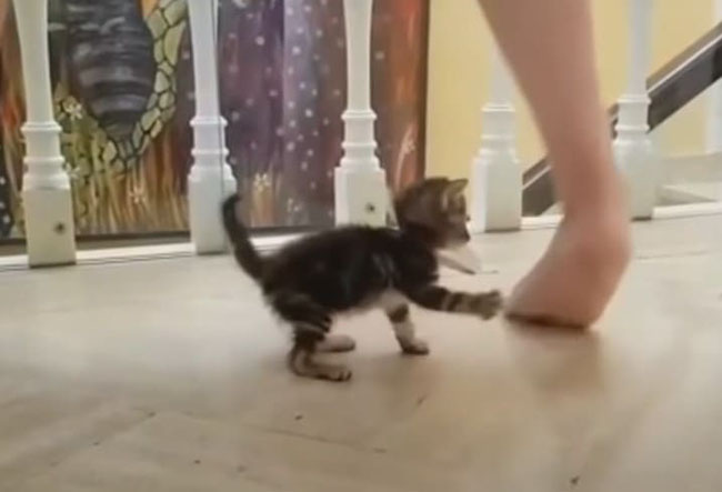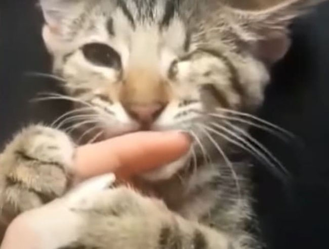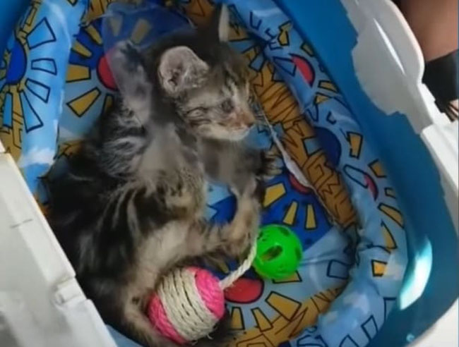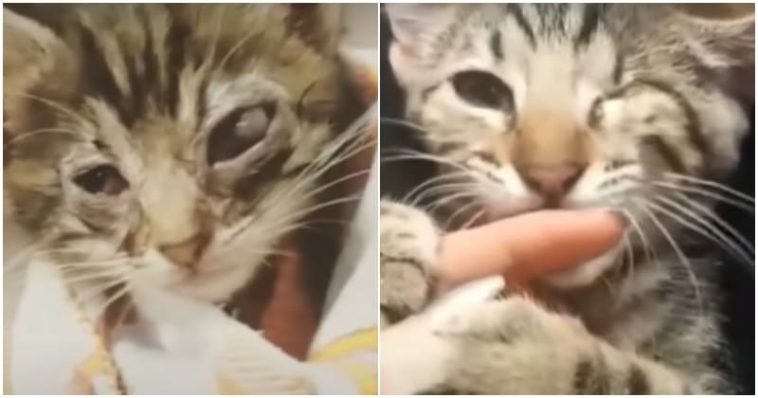 Mickey was a skinny kitten rescued from the street by Andrea Garcia. He had one injected eye and might not survive if no one found and rescued him. Andrea took him to the vet and decided to adopt the tiny sweetheart. The doctor said that Mickey’s left eye had to be removed due to the severe injection.
