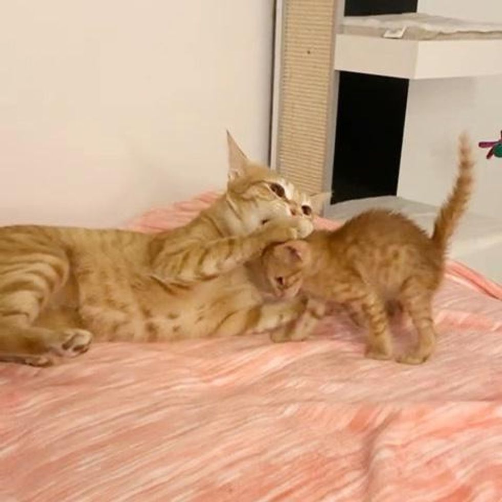 The sweet tabby is thriving and so happy to have a big kitty to look up to, and a constant companion to lean on. Alani is teaching him how to be a proper cat while reassuring him that he is loved.