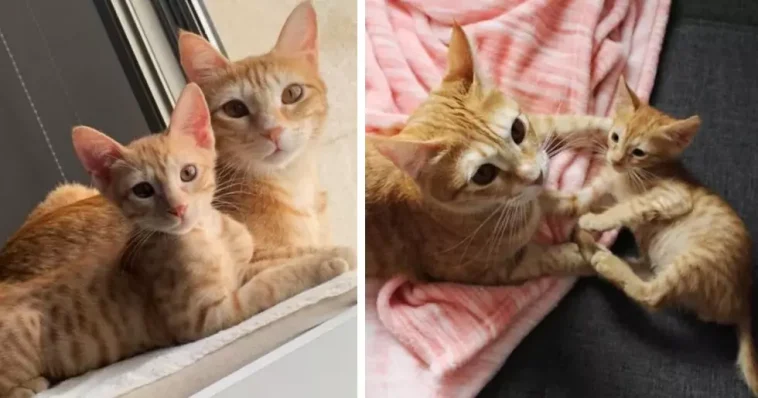 An orange kitten who was found as a stray, befriended a family cat and decided to follow her everywhere she goes.