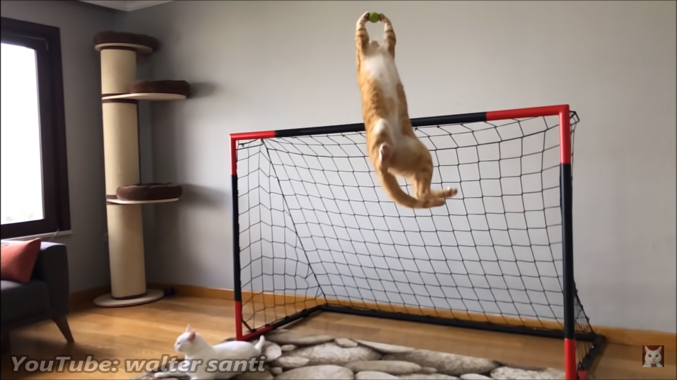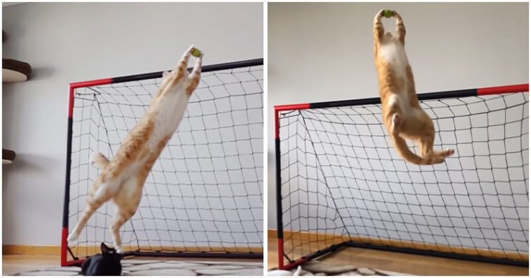 It’s no secret that cats are all naturally nimble and agile, but some of them are simply more athletic than others due to their conditions and personalities. Indy the ginger tabby is one of those talented cats. Born to be a goalie, this fervent boy is capable of making jaw-dropping saves that could put many professionals to shame.