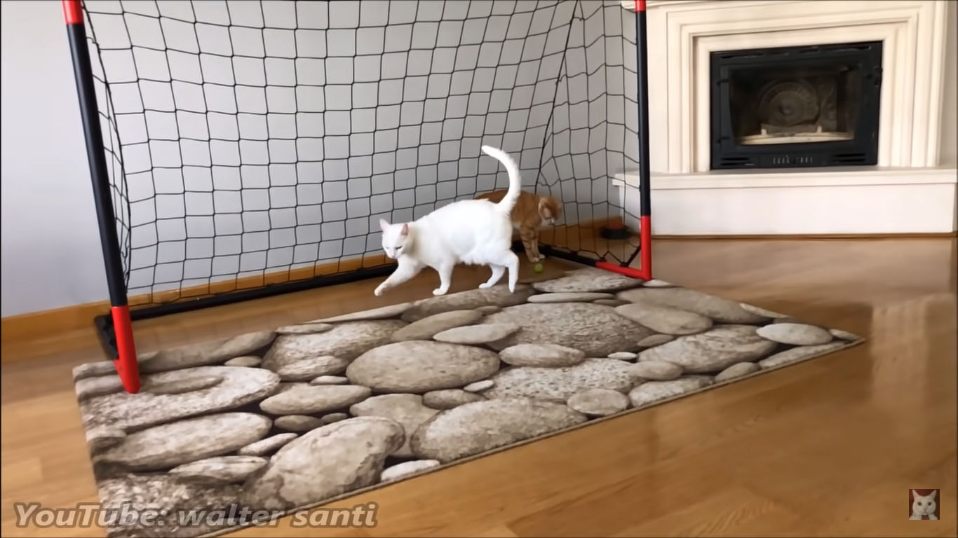 Needless to say, the two-year-old tabby often nails it as usual, but his performances aren’t always on top because he also needs to pay attention to a white cat name Santi – the very first cat that his owner adopted, aka the big boss of the gang. Since Indy doesn’t want to mess with Santi, he misses the ball sometimes.