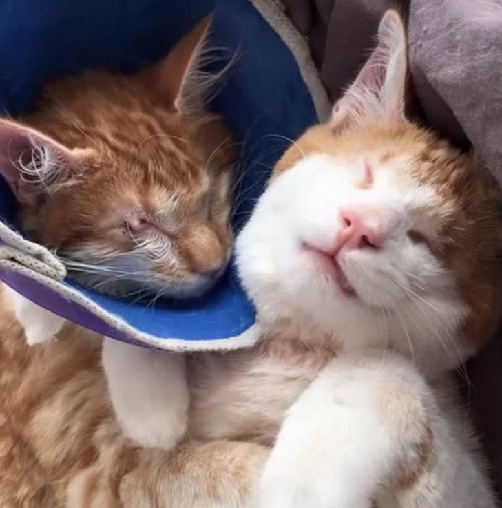 But despite their medical issues, both of the cats were friendly and active during their visit to the vet. Sadly, they had to have a medical procedure to remove the blind eyes because there was a high risk of them becoming infected.