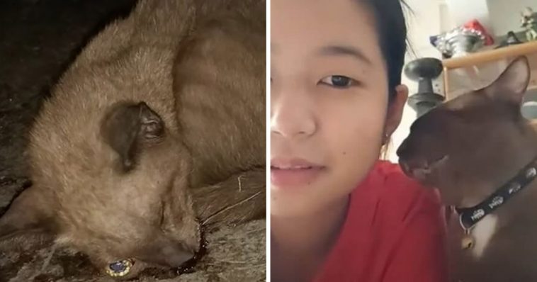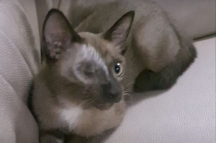 This little and sick kitten was found crying alone in a pitiful condition. After spotting the poor soul, the rescuer drove her to the hospital so she could receive medical treatment. She is now a healthy and cheerful cat despite losing one of her eyes.