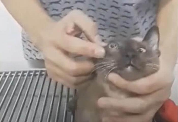 When the stray cat was taken to the clinic, she was diagnosed to have a broken jaw, drooping eyes, a bleeding abdomen, and anemia. The poor girl received intravenous fluids and pain relievers as first aid. She calmed down when the vet cuddled and caressed her.