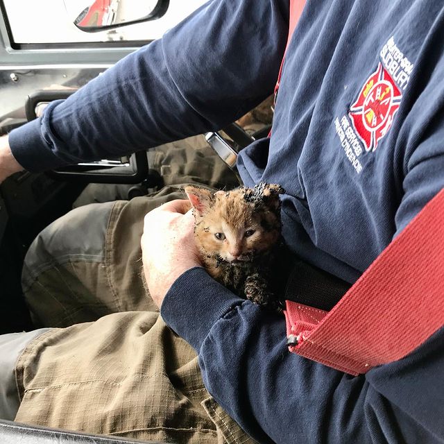 The kitten was rescued by firefighters during a garage fire in the Greater Sudbury area, Canada two years ago. After saving the cat, the kind-hearted men quickly rushed him to the Walden Animal Hospital in Lively.