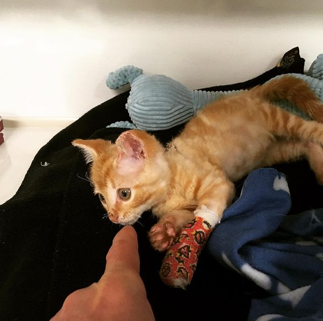 The baby boy didn’t mind having sock-like bandages on his paws. He was named Dobby after the famous house elf in “Happy Potter” – who was freed from enslavement after receiving a sock.