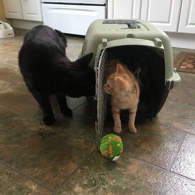Right after Dobby fully recovered, Maguire immediately adopted Dobby out and brought him to his home in Manitowaning, Manitoulin Island – where Dobby is introduced to his black cat Norisle.