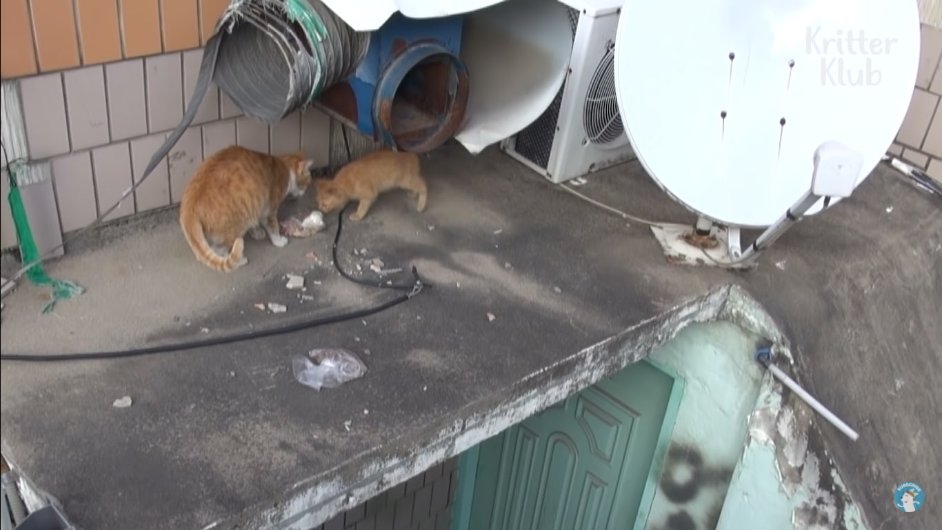 Everybody knows that the cat gave birth to 5 kittens not long ago, but then they all disappeared together and when Dongsuk came back 2 months later, she was all alone. It seems like the pitiful mom has lost her 4 babies so she has to try her best to take care of her last one. She keeps hiding the kitten in a safe place and goes out to search for food on her own.