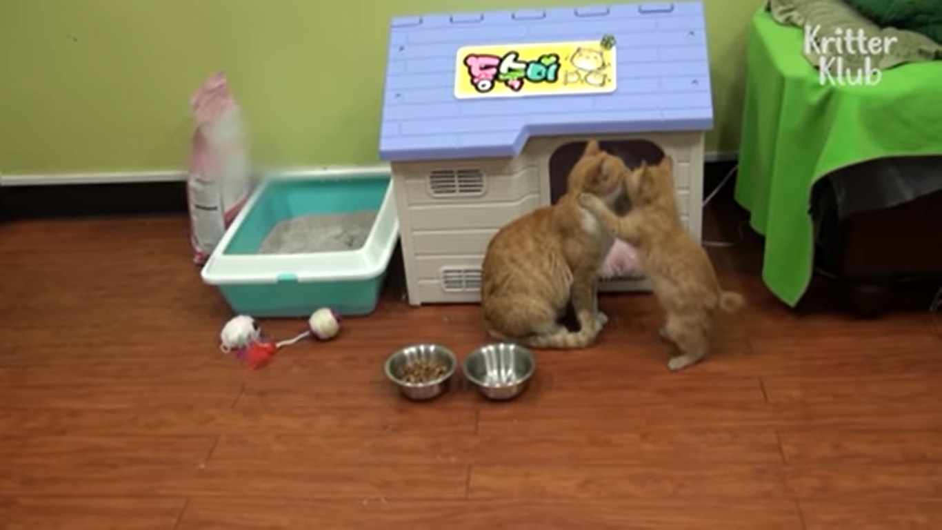 The rescuers quickly rush the mother and her baby to a vet clinic, where they learn some interesting news: Dongsuk still has milk to breastfeed her kitten, which is a symptom of the false pregnancy (pseudocyesis) caused by too strong maternal instincts.