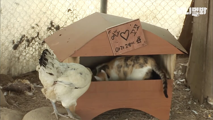 Eventually, their owner decides to build a small house for the cat family inside the chicken coop so they don’t have to live too far from their wonderful nanny/granny Kkokko! Thankfully, the kittens have settled right into their new home and Eno seems to be really satisfied with that outcome, too.
