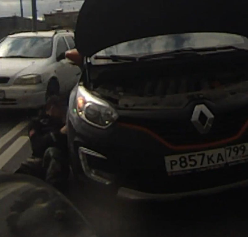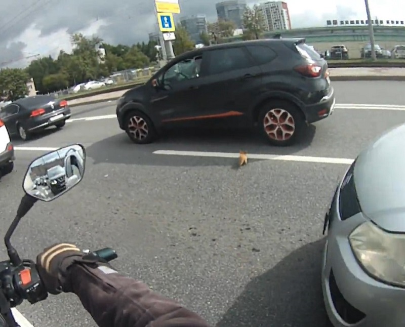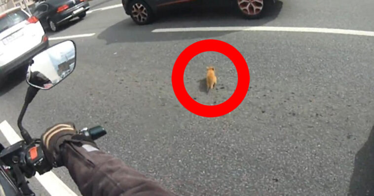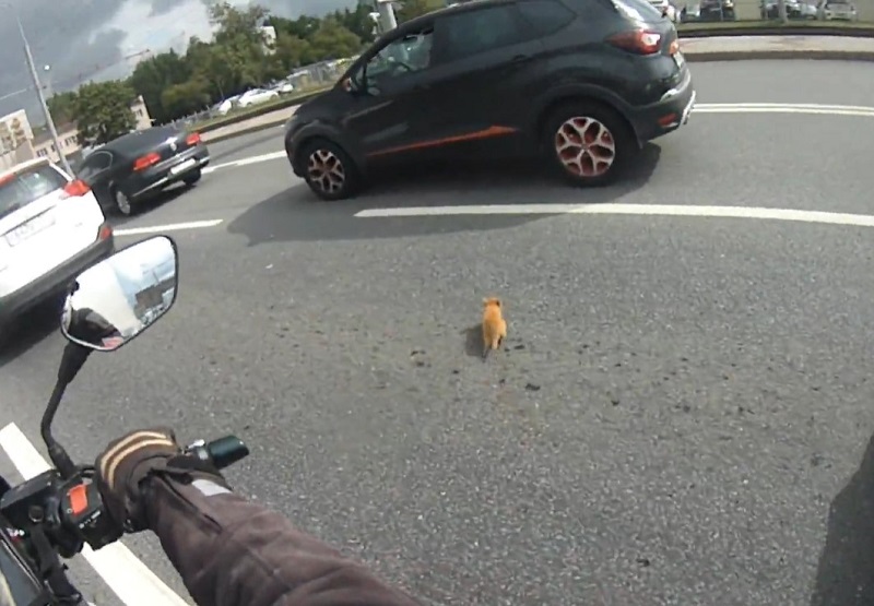 The motorcycle driver was traveling on the big road in Moscow when he saw the poor kitten stranded on the busy highway. Knowing that the kitten was in danger, the man did not hesitate to rescue him. Despite the danger of parking in the middle of the road, he stopped other cars and got the kitten.
