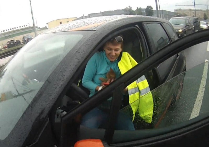 However, he was not the only hero of this rescue, a car driver also joined him to save the kitten. The woman put the little soul inside her car and took him to a safe place as it had begun to rain. Thankfully, the motorist even captured the rescue and shared it on social media.