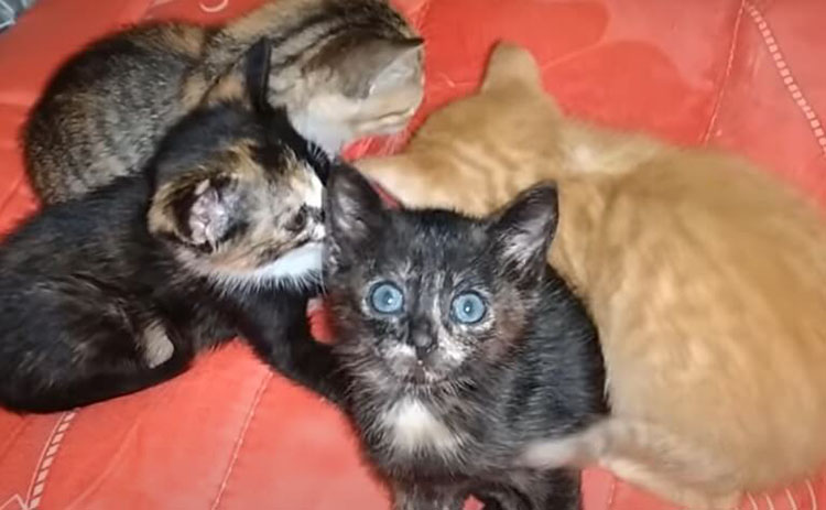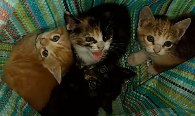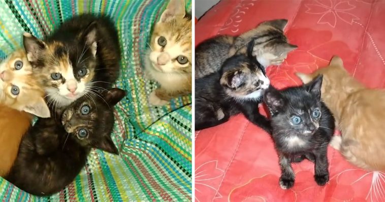 It is hard for kittens to survive without their mother or human help. These four babies were abandoned in a market when they were just four weeks old. While shopping at the market, a kind woman spotted the kittens and called Kitten and Puppy are a life for help. On the same day, the babies were taken home and stayed in good hands.