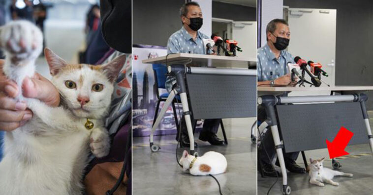 This phenomenon can be seen when a little cutie pie decided to include itself in a very important press conference at the Putra Heights LRT station. The event was held in conjunction with the opening of a PPV at the station, led by Prasarana Group’s Chief Human Capital Officer, Tomin Salikan. Rapid KL shared some pictures of the kitty on their official page, drawing more attention to the kitty than the whole event. The page wrote,