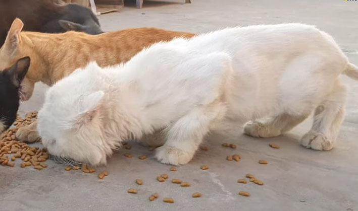 At home, the boy was given a bath. He turned out to be a beautiful cat in white hair and different-colored eyes. That wasn’t weird. That was the thing making him special and unique. The volunteers called him by a beautiful name, Iris. At the new home, he felt safe and peaceful. Iris was an intelligent boy who made friends quickly after several hours at the shelter. The cat was loved and cared for in the way he needed.