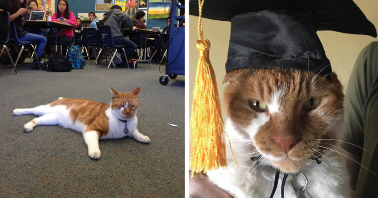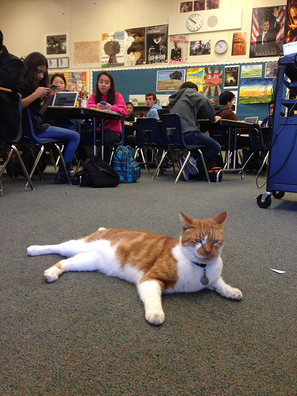 At the age of 2, Bubba already started a habit of visiting nearby schools as Leland High School and Bret Harte Middle School. He would spend his whole day roaming at the schools’ halls, sitting in on classes, watching sports events, and catching the attention of the students.