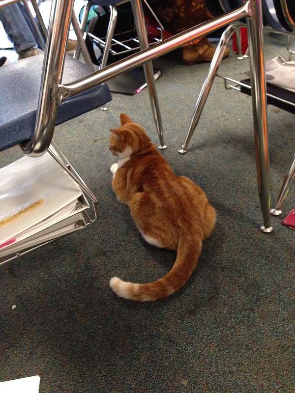 When Bubba was admitted as a part of the school body, he was allowed to go out whenever he wants but surprisingly, he didn’t cause too much disturbance. He would beg for treats meowing at the teacher though.