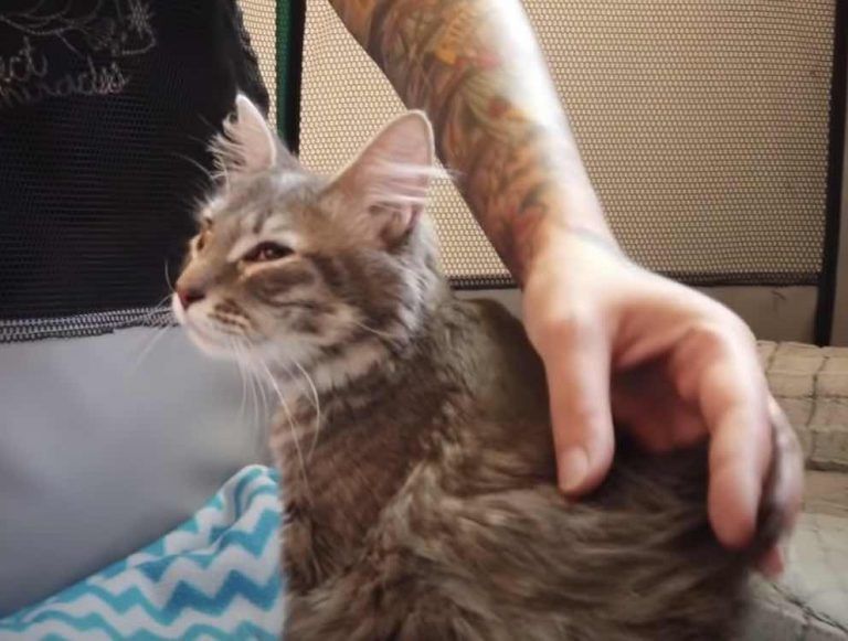 Sadly one of them didn’t survive. One of the first things Hannah has to do is assess how well the young mama, now named Pine, is looking after her only kitten named Twinkle.