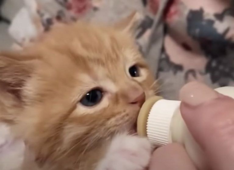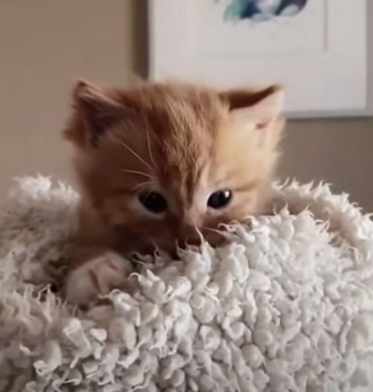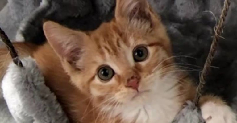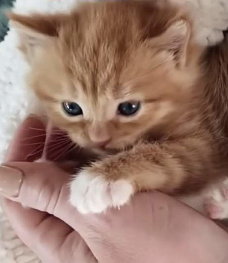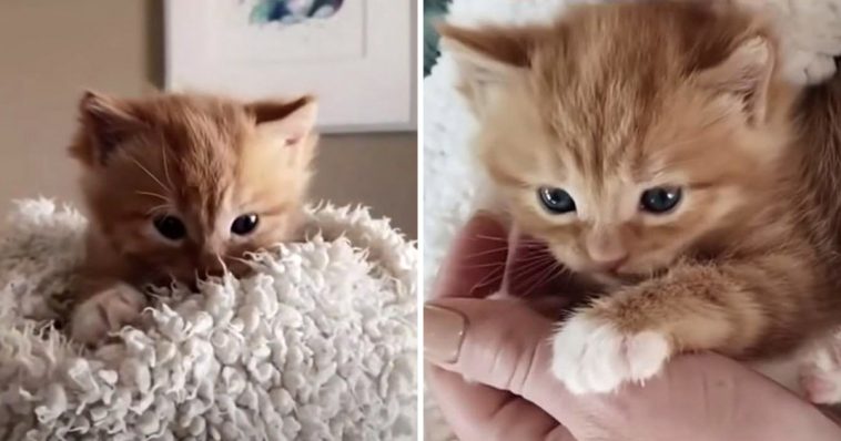 A tiny ginger kitten had been abandoned by his mother at a very young age.