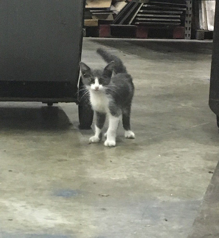 A lost or stray cat had been living in a warehouse for some weeks, everyone could hear him crying but they didn’t manage to get him to come out of his hiding place.