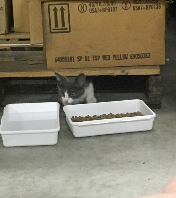 So they came on the weekend, hoping to gain the kitten’s trust when no one else was around. They brought plenty of kitten food and left out fresh water.