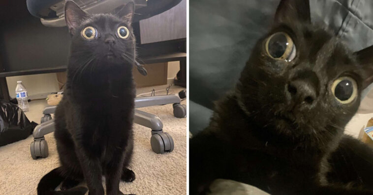 Today, Jinx’s eyes are still huge. Her legs stick out to the sides, and her mouth and nose are a little different too. She’s very unique-looking, and almost looks more like a little alien than a cat — and her family wouldn’t have her any other way.