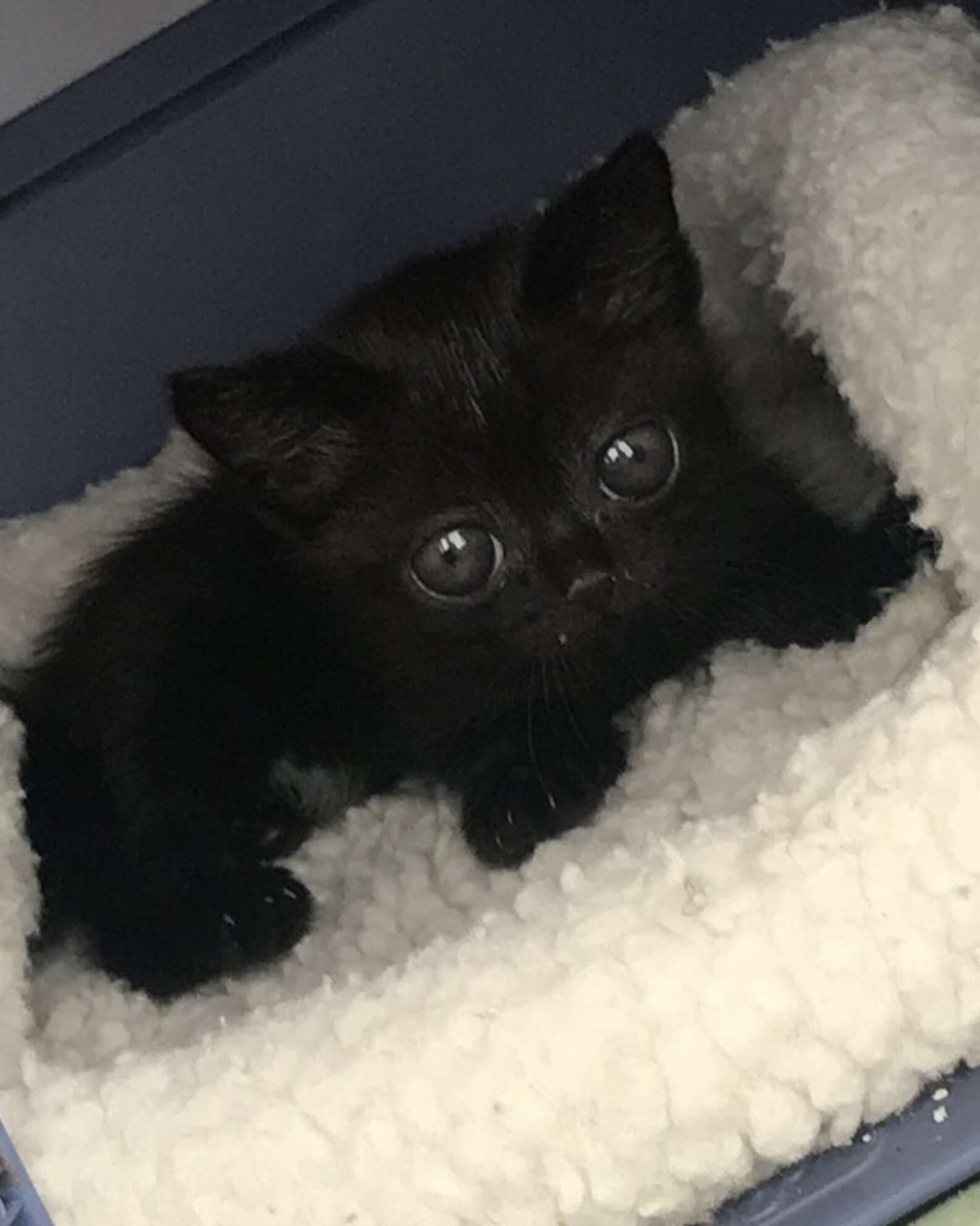 The family wrapped her up in a cozy blanket, gave her some formula and vowed to help nurse her back to health. She seemed to be doing just fine — but on the second day in her new home, Ibanez noticed that Jinx’s eyes were a little bigger than they should be, and then noticed a few other quirks as well.