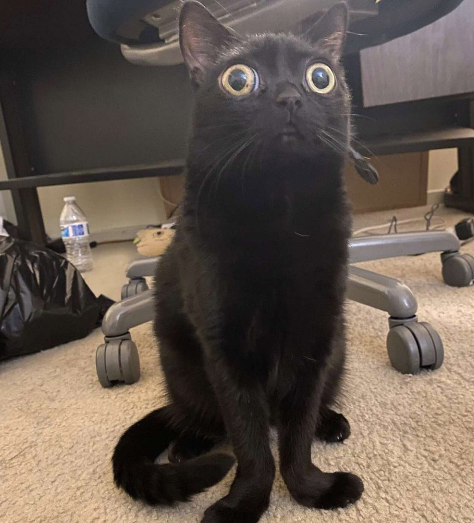 “I wasn’t sure if it was just because she was a kitten (I hadn’t had a kitten in years), but I originally just thought her eyes were really big, but over time realized her feet were also really wonky and same with her nose and mouth,” Ibanez said. “I was expecting her to grow into them and it just never happened!”